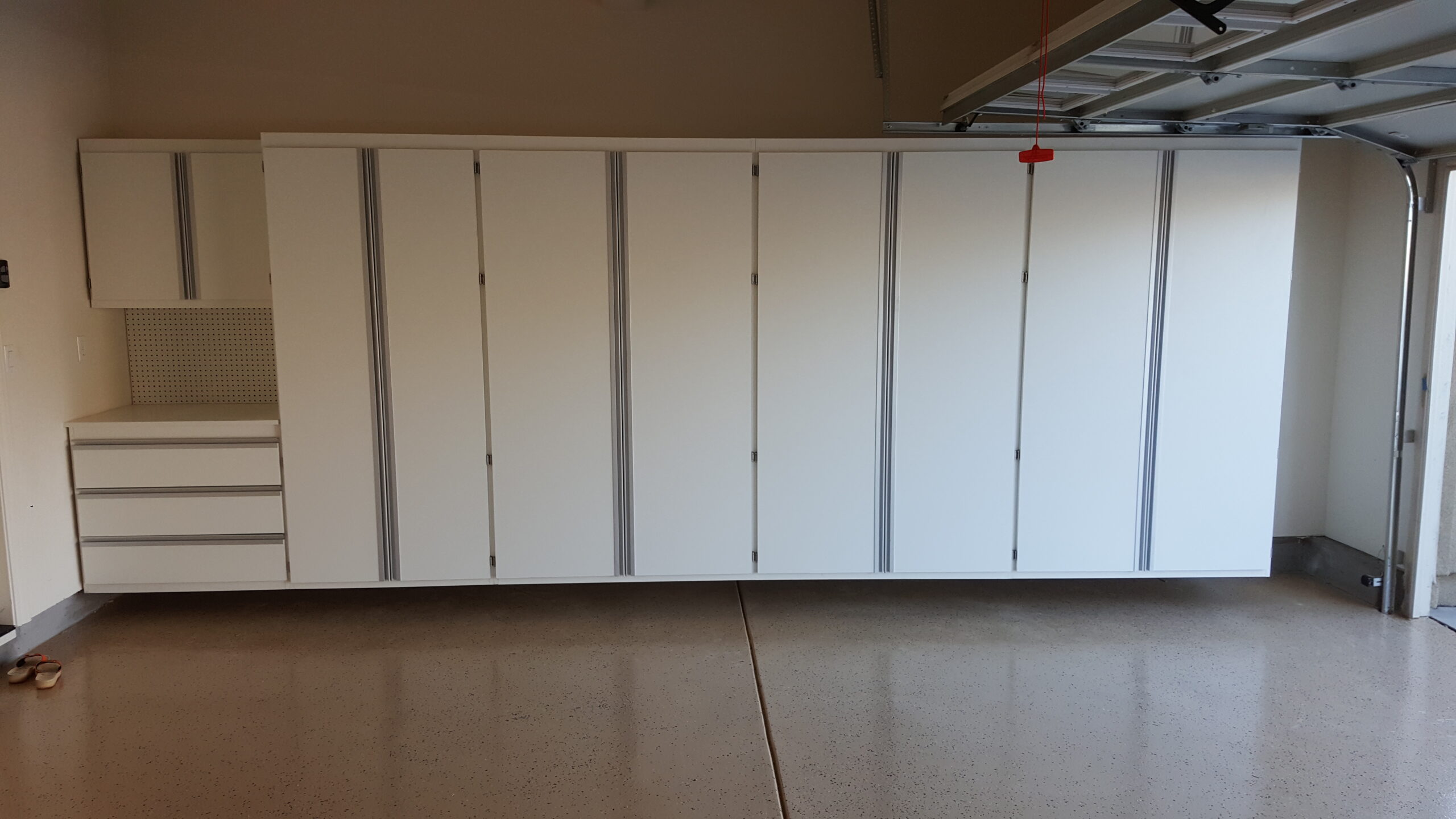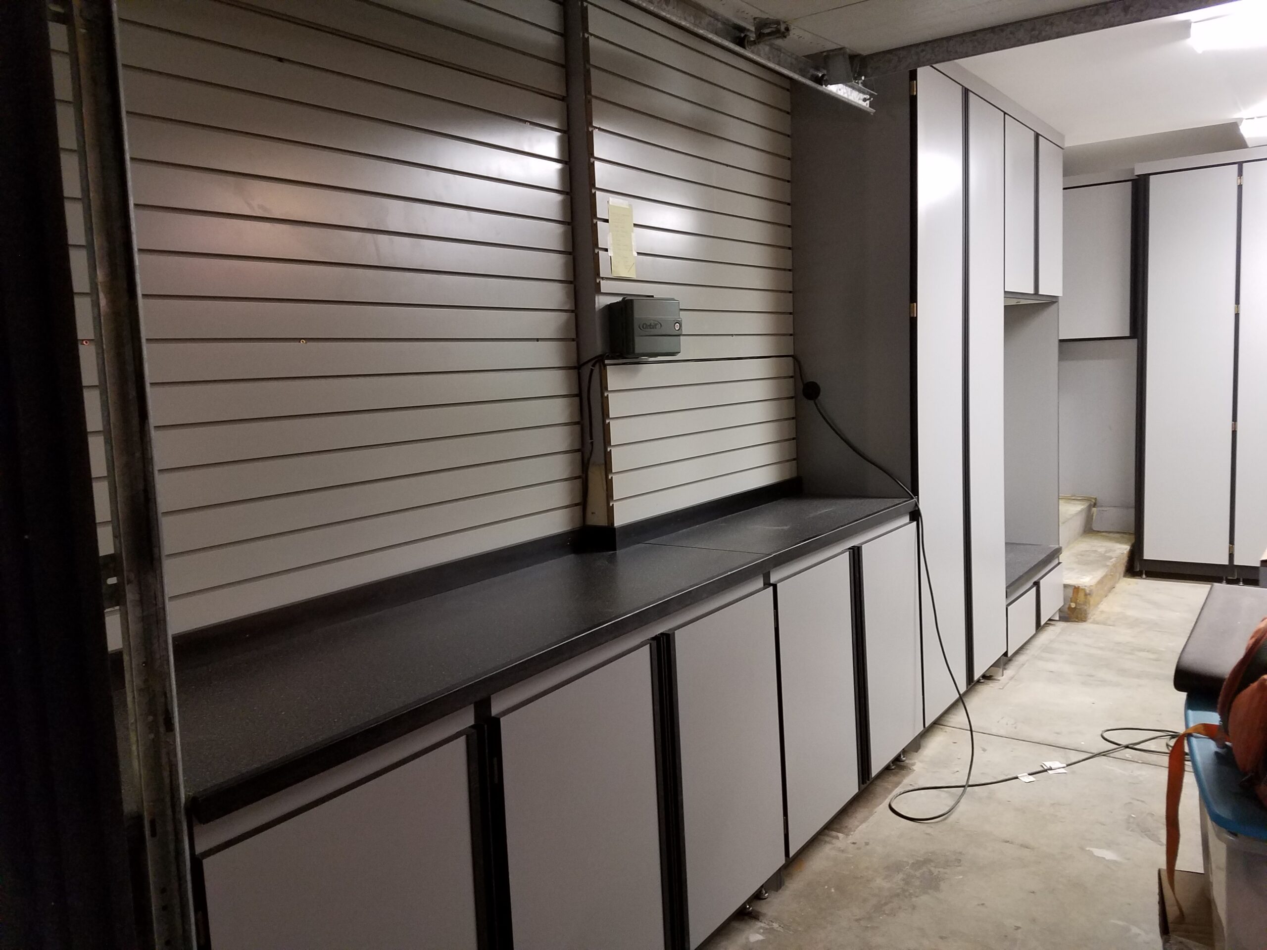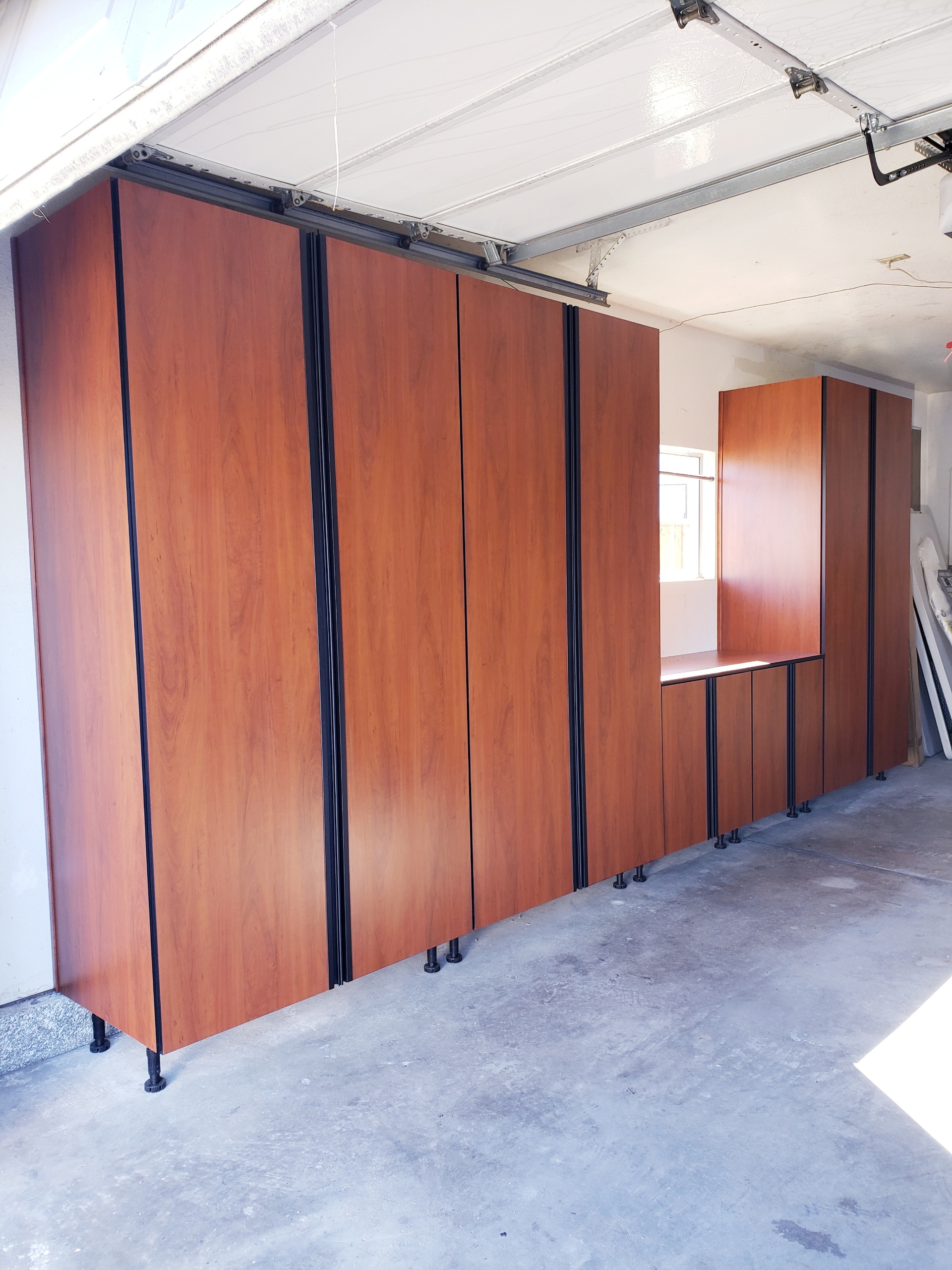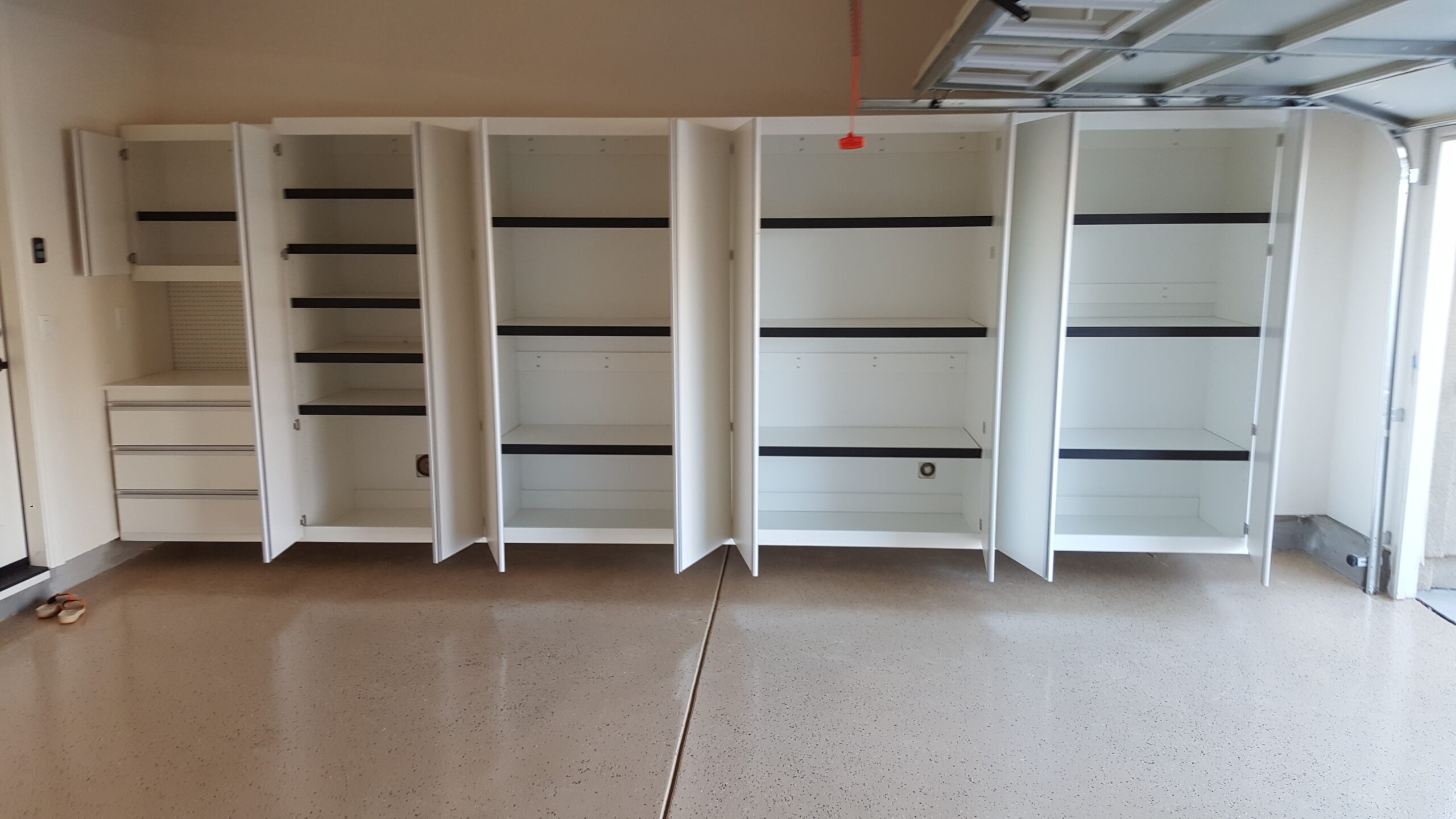 Here at A Better Cabinet & Design, we manufacture Garage Cabinets that are 8ft tall x 4ft wide x 2ft deep (1200 lb. total capacity). Our Garage Cabinets are not what you call butt jointed together but are interlocking together which are tongue and grooved. We have leg levelers on the bottom of our cabinets for additional support. The 4ft wide 2ft deep cabinets come with 5 legs and our 2ft wide 2ft deep cabinets come with 4 legs. Our legs are ordered to fit. The options are 6”, 9” or 12” high depending on how high your stem wall or foundation lip is in the back of the garage floor. Our side panels, tops and bottoms of our cabinets are all 3/4. All our joints are glued together with type bond II glue for the best bond possible.