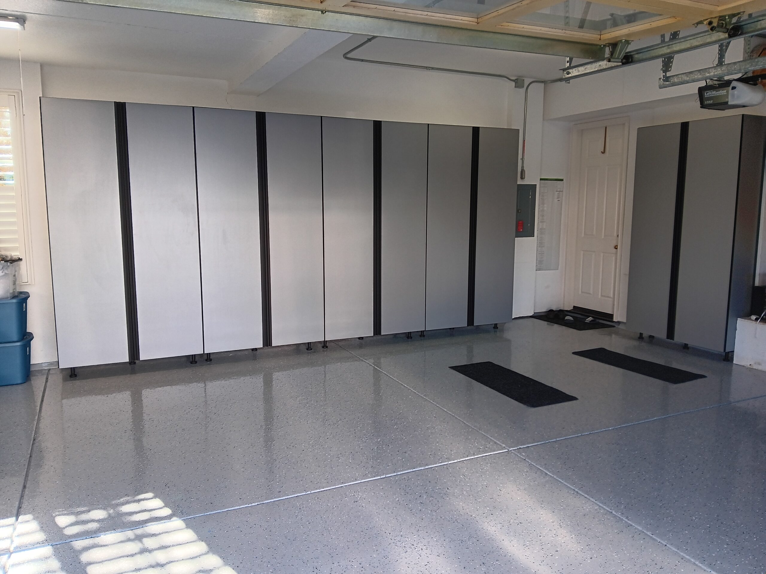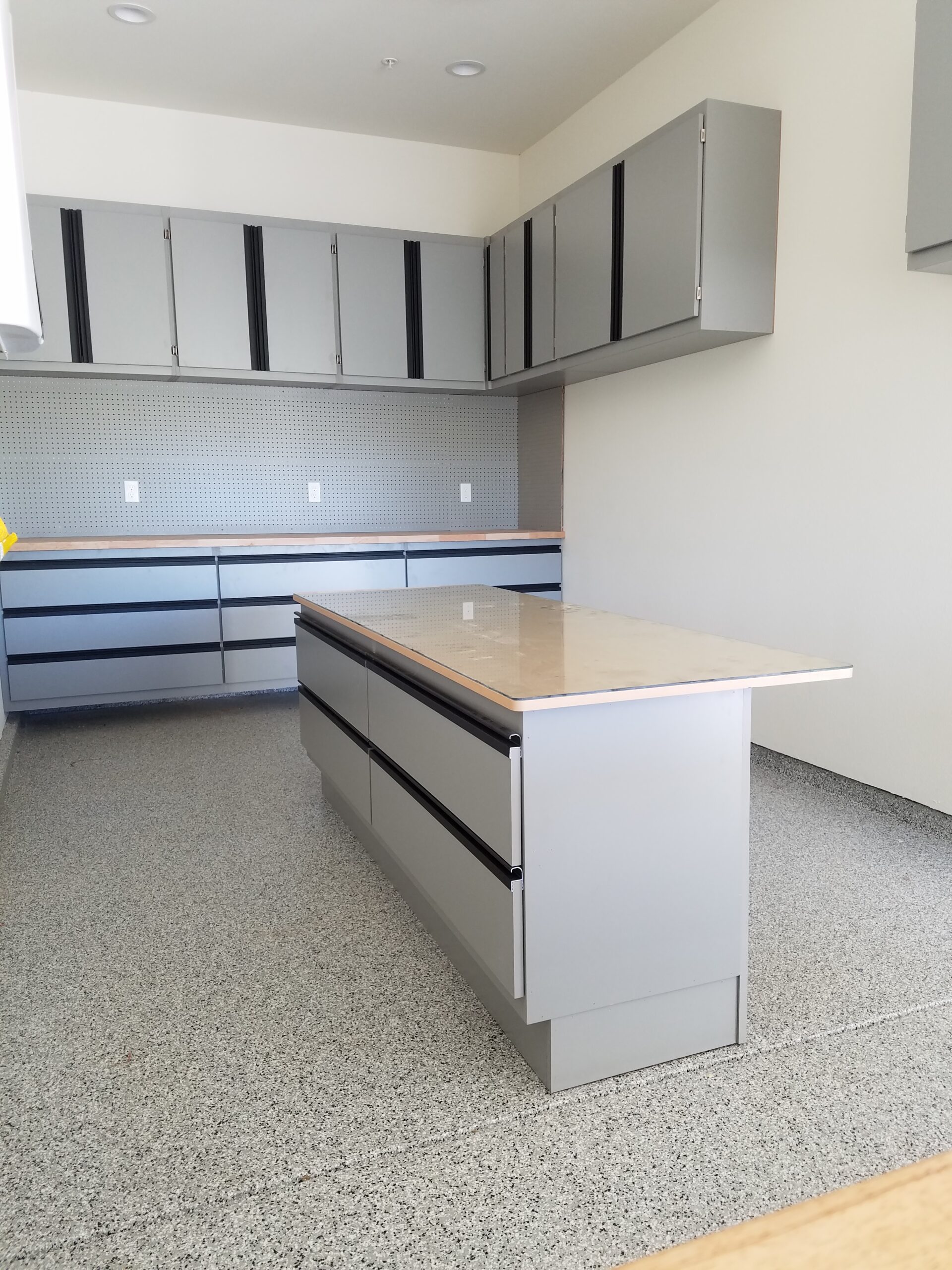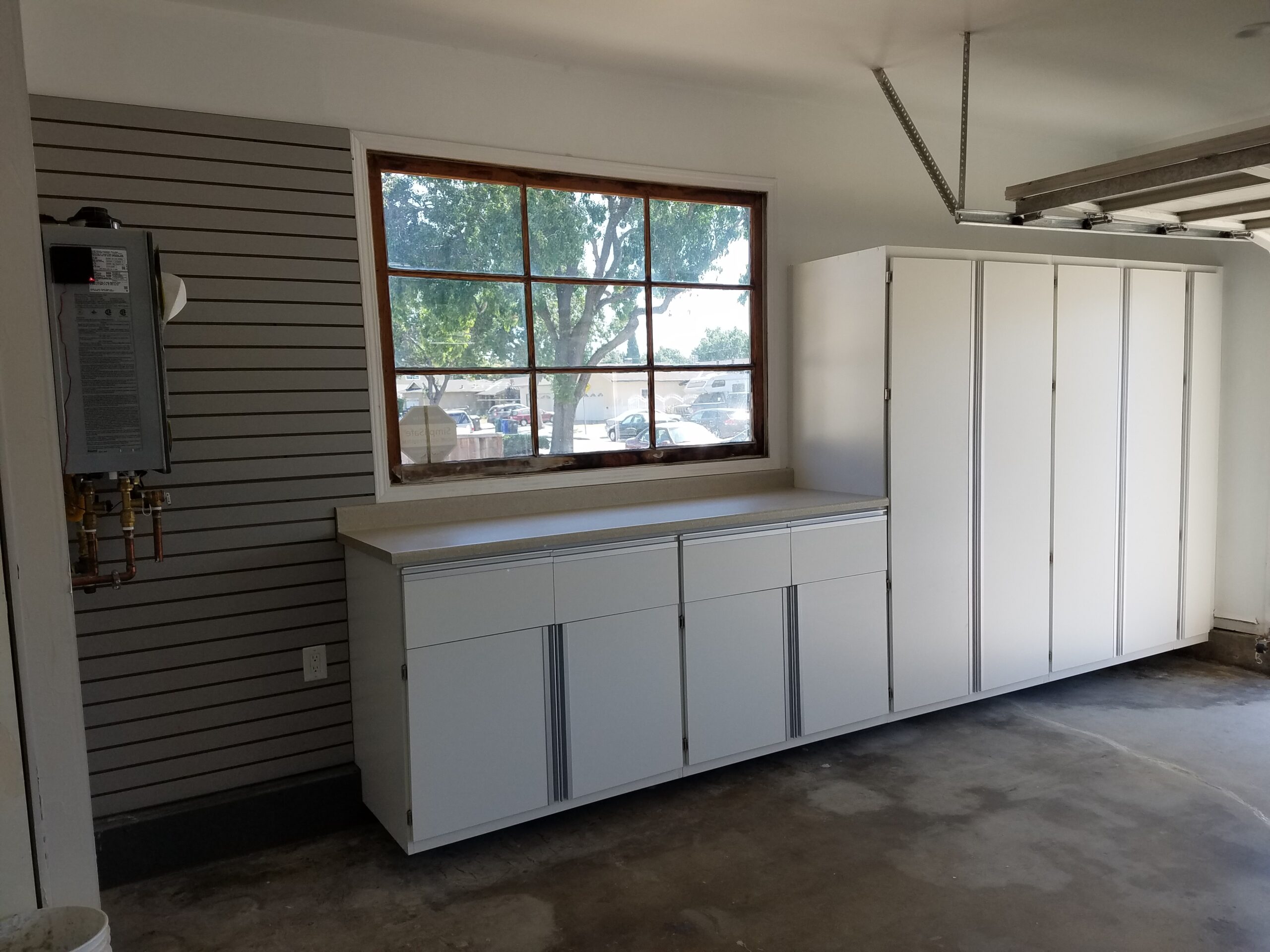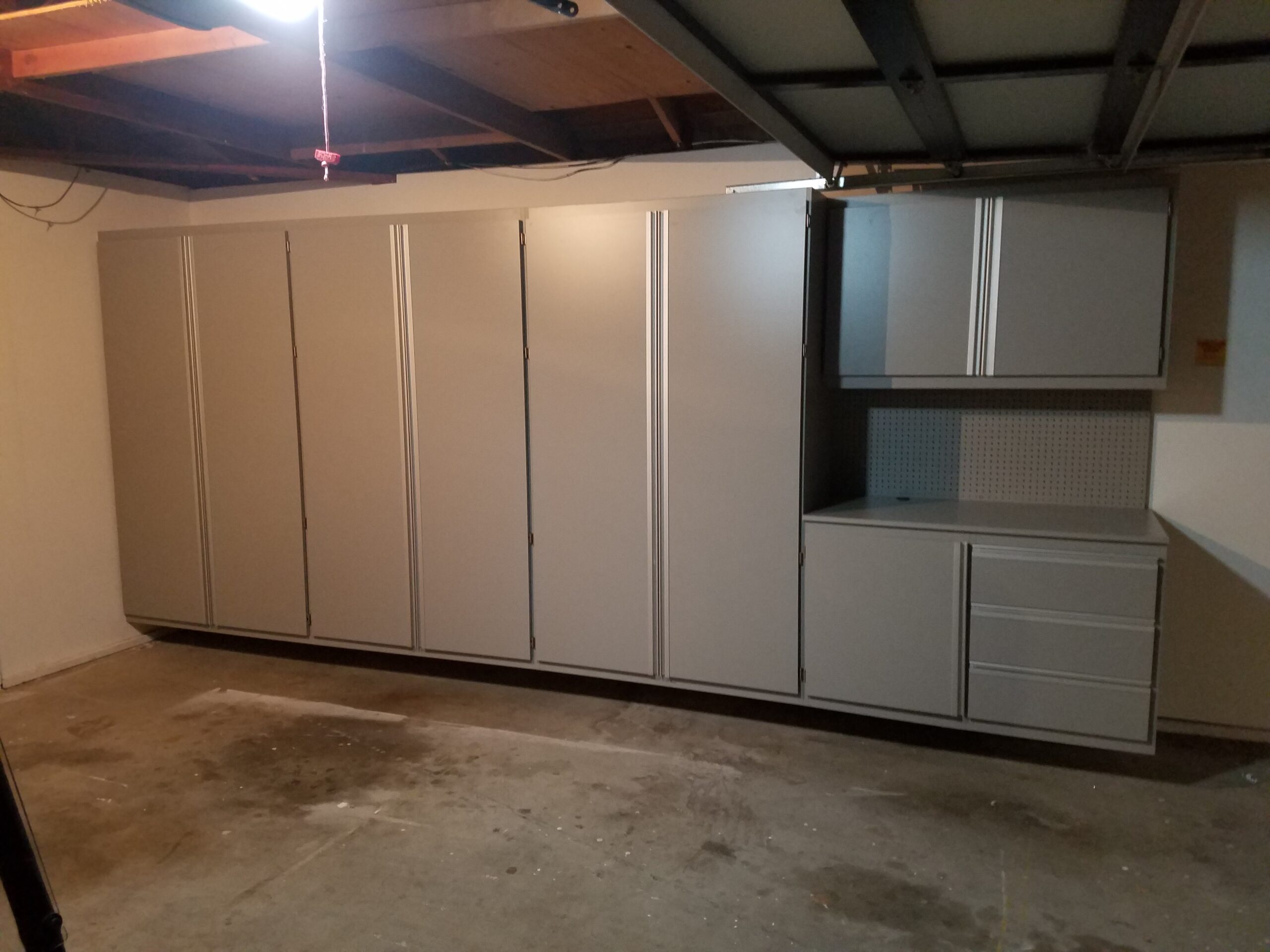 Our garage cabinets are better than other online retailers because of our exclusive metal shelf stiffener on the front of our 3⁄4 shelves (350 Lb. capacity) and of course our 8’ tall x 4’ wide x 2’ deep size. Other retailers only sell 32”-36” wide, 16”-20” deep and 80”-84” tall garage cabinets. We can give our customers a Superior AND Bigger Garage Cabinet for the same price. The other guys only provide 4 cabinets for 12ft when we offer just 3 cabinets.
