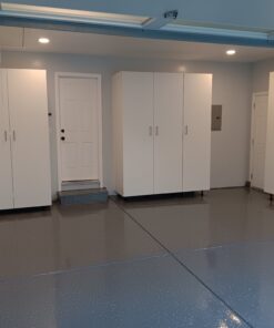 Our garage cabinets are better than other online retailers because of our exclusive metal shelf stiffener on the front of our 3⁄4 shelves (350 Lb. capacity) and of course our 8’ tall x 4’ wide x 2’ deep size. Other retailers only sell 32”-36” wide, 16”-20” deep and 80”-84” tall garage cabinets. We can give our customers a Superior AND Bigger Garage Cabinet for the same price. The other guys only provide 4 cabinets for 12ft when we offer just 3 cabinets.